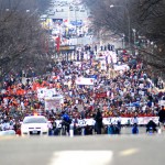 Every year in the middle of January about 400 people from the Diocese of Saginaw get on buses to go to the nation’s capital in Washington DC to march for those who do not have a voice in this world. They march for the innocent lives that are in danger of abortion. The trip is filled with many wonderful and enjoyable times. This year, Nouvel Catholic Central HS was able to represent well by sending the entire sophomore class. The trip started out on Saturday morning when all 410 of us pro lifers celebrated mass with the most Reverend Bishop Cistone of our diocese and after we were finished we hit the road on a 12 hour long bus ride. On the busses we did a variety of religious activities such as praying and watching pro life movies so that was fun. The next morning, we made our way to the National Basilica (which is the largest Catholic Church in the United States) and we celebrated mass and our very own Bishop Cistone was the main celebrant. It was amazing to be surrounded by 1000 to 2000 people in one mass! After mass at the Basilica groups went off and did there sightseeing and then we all met up at the 4-H Center where we all stayed. There, a young woman told her story about how she was raped and chose to have baby. Her story was all the more powerful as her son was there as well. The next morning all 400 of us got up early in the morning and made our way to the big youth rally at the DC Armory where roughly 3000 people were there rocking out for life. Finally, we went to the March itself and together with over 400,000 others we lent our voices to speak out for the unborn.