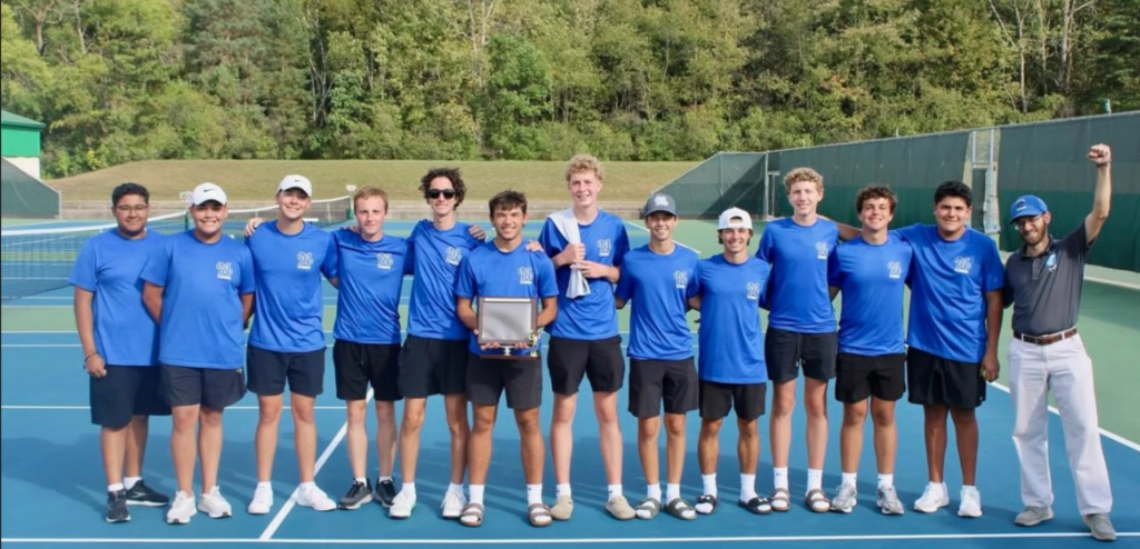 What a racket! The Nouvel Boys Varsity Tennis team currently holds a record of 5-0-1. They played an intense match against Garber on Tuesday, September 23 and brought home a 5-3 win. Today, September 26, the tennis boys are competing in the Tri-Valley Conference. Their next match is against Chesaning next week, Wednesday at White Pine at 4:00. After speaking with the team, they are confident that they will end this season strong. When asked what their mantras were on the court, Philip Sturtz shared, “Knowing I’ll get Starbucks after my match.” Nathan Zeleniuk shared, “I don’t have one I just lock in.” Tino Olvera shared that his pregame hype song is Maps by Maroon 5, and Grant Groya’s song is Let It All Work Out by Lil Wayne. Let’s bring home a TVC win… VERSO ALTO!!!
